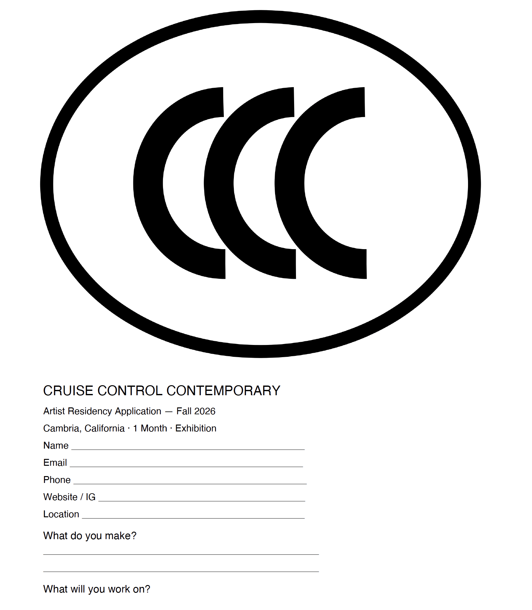 With that in mind, we’re excited to announce the Fall 2026 Artist-in-Residence program at Cruise Control Contemporary.